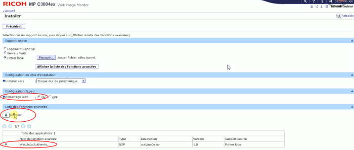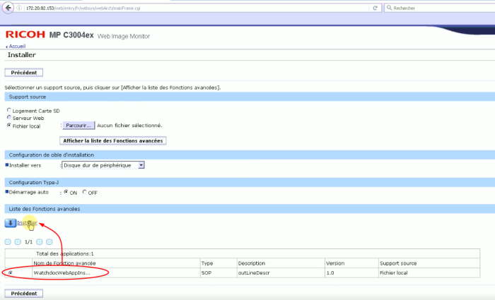 depuis l'interface de Configuration, dans la section Paramètres Fonctions avancées, cliquez sur Installer ;