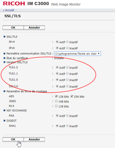 Pour permettre les échanges entre le périphérique et le WES, il est tout d'abord nécessaire d'activer la communication SSL/TLS :