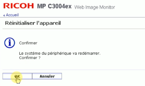 Au terme de ce paramétrage, il est nécessaire de réinitialiser le périphérique :
