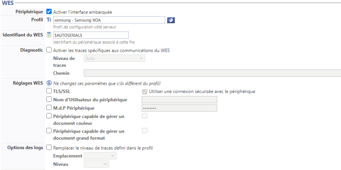 Activer l'interface embarquée : cochez la case pour appliquer un WES sur le périphérique.