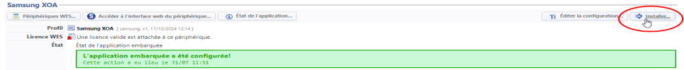 Installer : permet à Watchdoc d'installer le WES sur le périphérique (peut prendre 30 sec.) ;