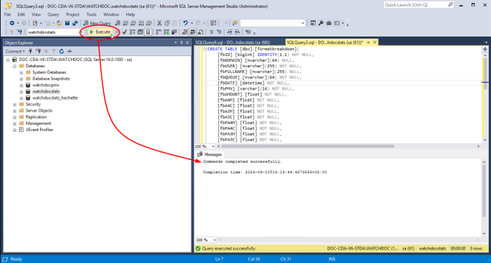 quittez SQL Server Management Studio et redémarrez le service Watchdoc ;