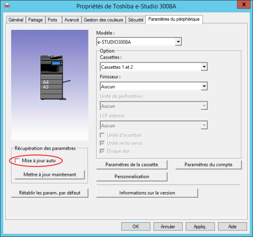 Sous l'onglet Paramètre du périphérique, vérifiez que la case "Mise à jour auto" est décochée :