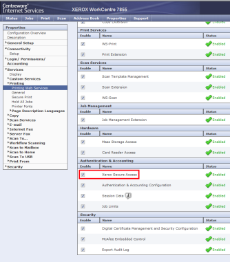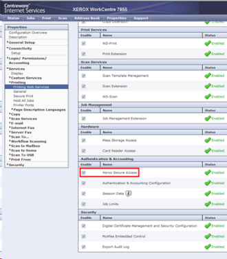 dans la section Authentication & Accounting, cochez Xerox Secure Access ;