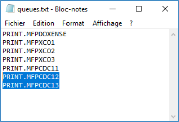 si nécessaire, supprimez du fichier queues.txt les files d'impression sur lesquelles vous ne souhaitez pas installer le WES.